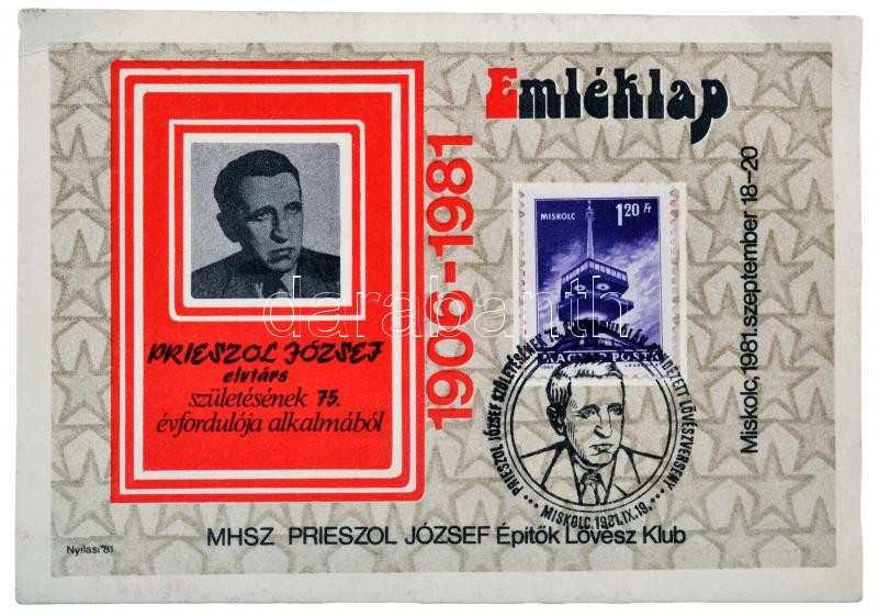 1981. "MHSZ. Prieszol József Építők Lövész Klub Miskolc" jelzett Holló...