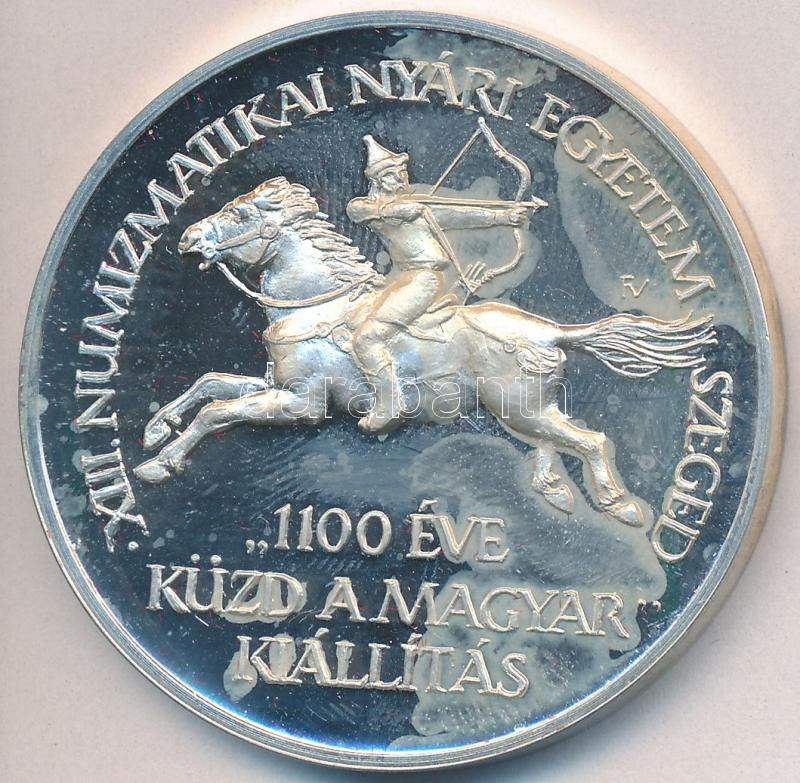 Description: Fűz Veronika (1951-) / Fritz Mihály (1947-) / Szabó Géza (1939-) 1996. "12. Nyári Numizmatikai Egyetem - Szeged" Ag emlékérem (35,59g/0.925/42,5mm) T:PP ujjlenyomat