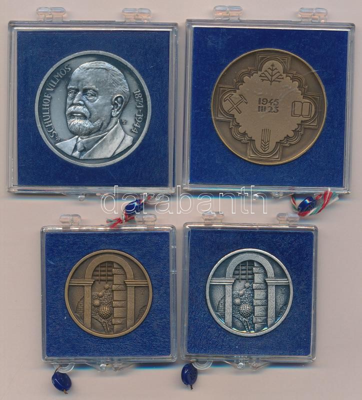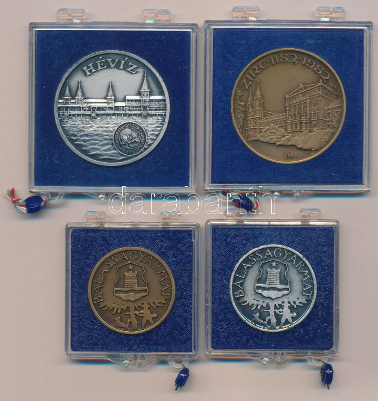 Képíró Zoltán (1944-1981) DN "Magyar Éremgyűjtők Csoportja-Keszthely - Hévíz / Schulhof Vilmos" fém emlékérem + Fritz Mihály (1947-) 1982. "Zirc" Br emlékérem (42,5mm) + DN "Balassagyarmat" (2x) Br és fém emlékérem (31mm), mindegyik plombált "ÁPV" tokban T:1