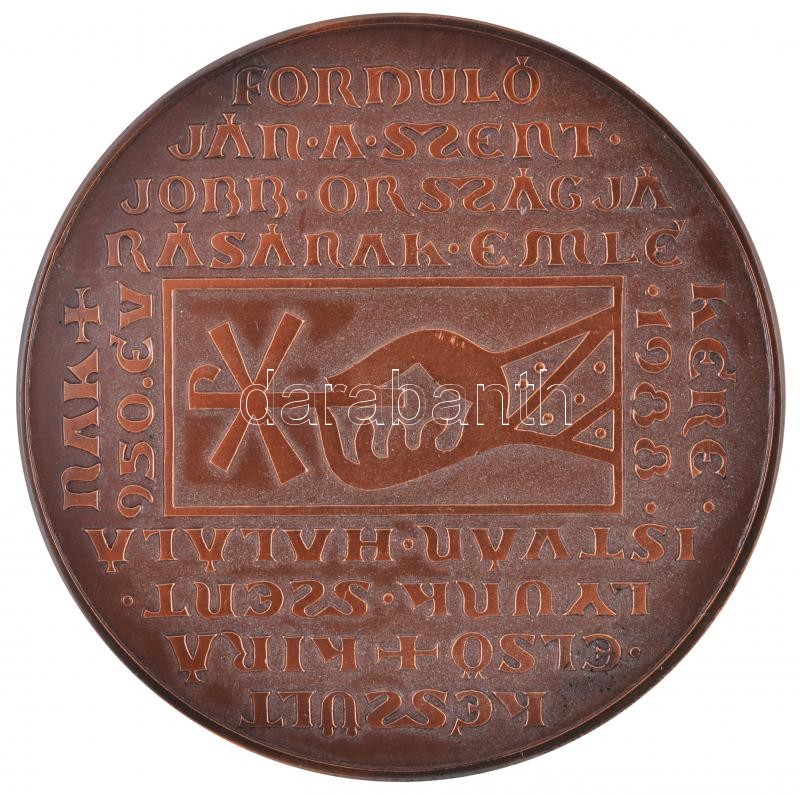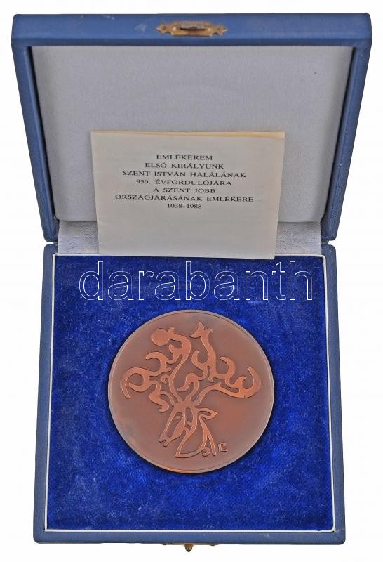 Description: Papp László (1947-) 1988. "Első Királyunk Szent István Halálának 950. Évfordulójára a Szent Jobb Országjárásának Emlékére 1988." patinázott vörösréz emlékérem dísztokban, tanúsítvánnyal (70mm) T:1-,2