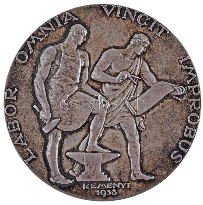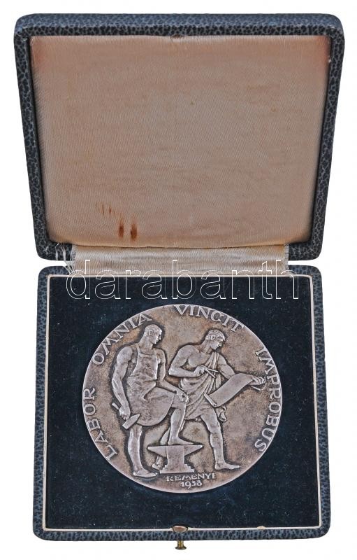 Description: Reményi József (1887-1977) 1938. "Labor Omnia Vincit Improbus / Emlékül a Magyar Királyi Iparügyi Miniszter" ezüstözött Br emlékérem eredeti dísztokban (72mm) T:2