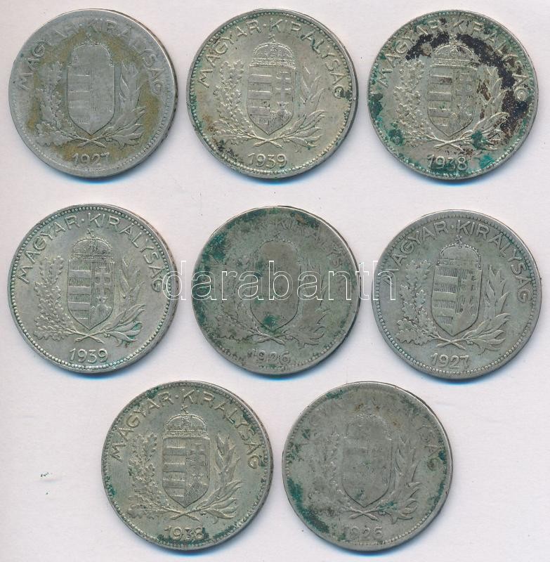 https://www.darabanth.com/en/227-Online-auction/227.0/Numismatics/Hungarian-metal-and-silver-coins~600009/1926-1939-1P-8x-T2-3~II1008275