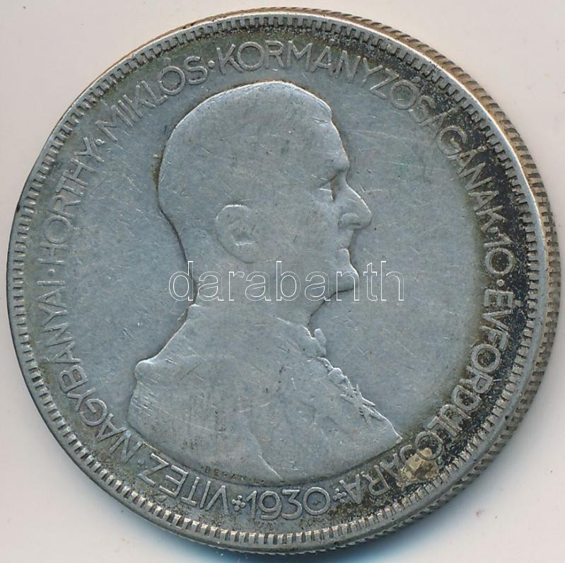 https://www.darabanth.com/en/227-Online-auction/227.0/Numismatics/Hungarian-metal-and-silver-coins~600009/1930-5P-Ag-Horthy-jobbra-T3-3Cbr3EAdamo-P8~II1008793