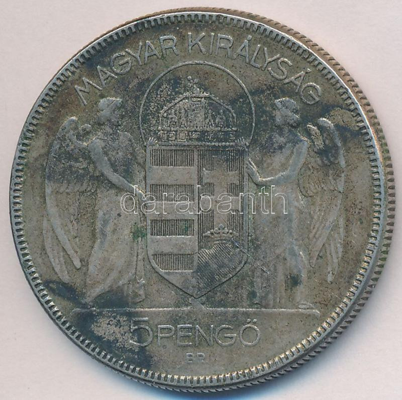 https://www.darabanth.com/en/227-Online-auction/227.0/Numismatics/Hungarian-metal-and-silver-coins~600009/1930-5P-Ag-Horthy-jobbra-T3-3Cbr3EAdamo-P8~II1009851