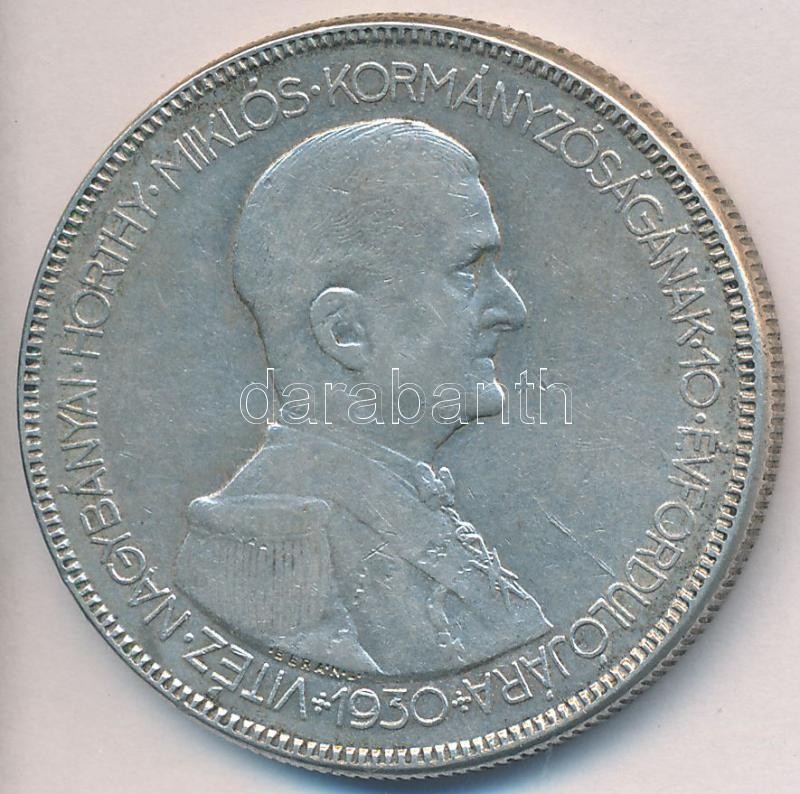 https://www.darabanth.com/en/227-Online-auction/227.0/Numismatics/Hungarian-metal-and-silver-coins~600009/1930-5P-Ag-Horthy-jobbra-T3-3Cbr3EAdamo-P8~II1010120