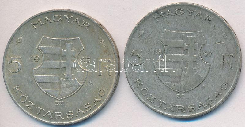 1947. 5Ft Ag "Kossuth" (2x) T:2-,3