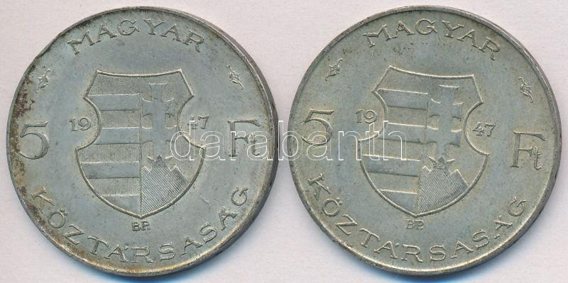 1947. 5Ft Ag "Kossuth" (2x) T:2-,3
