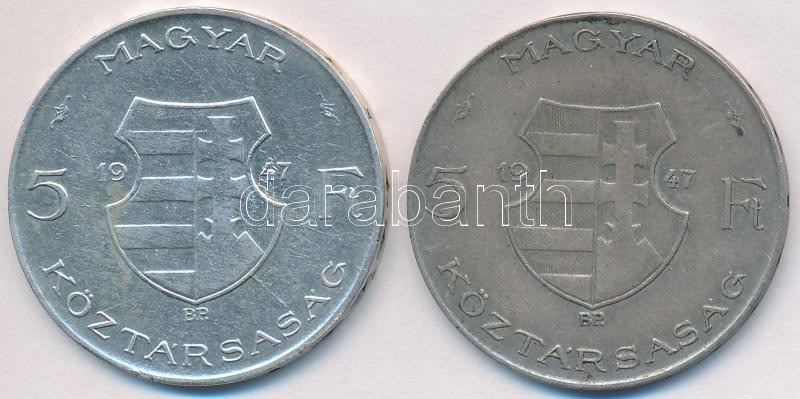 1947. 5Ft Ag "Kossuth" (2x) T:2-,3