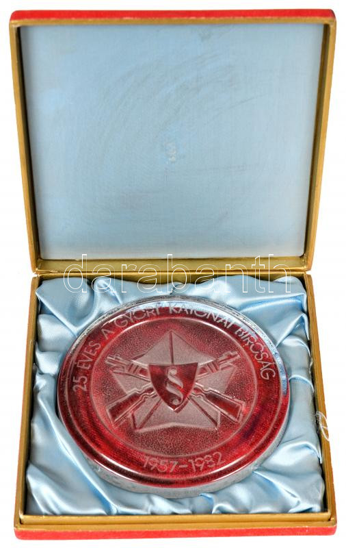 1982. "25 éves a Győri Katonai Bíróság" üveg emlékplakett dísztokban (...