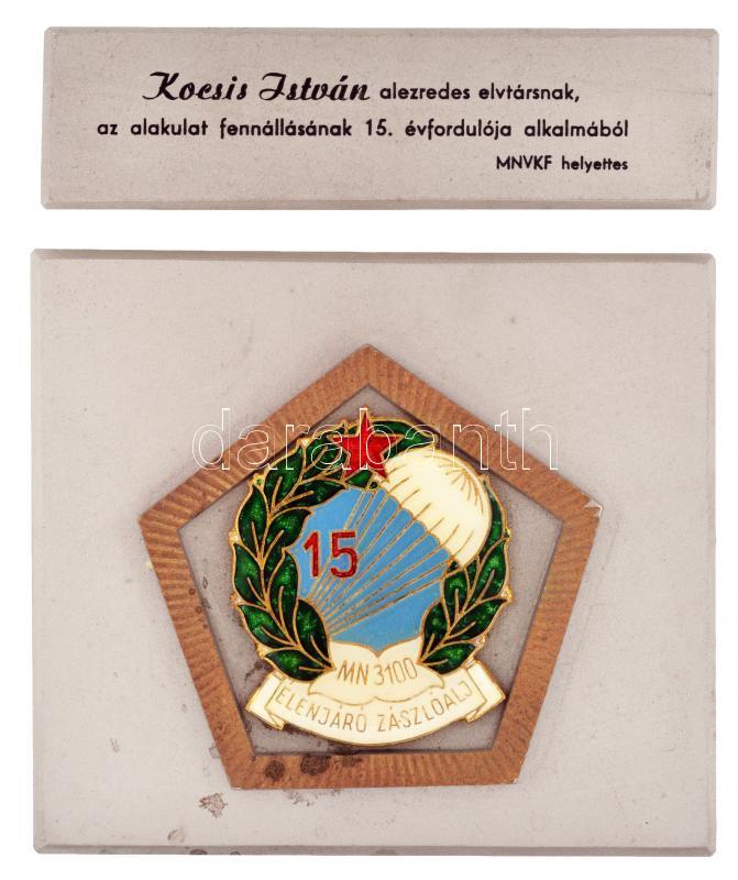 DN "MN 3100 (Szolnoki) Élenjáró Zászlóalj 15. évforduló" zománcozott f...