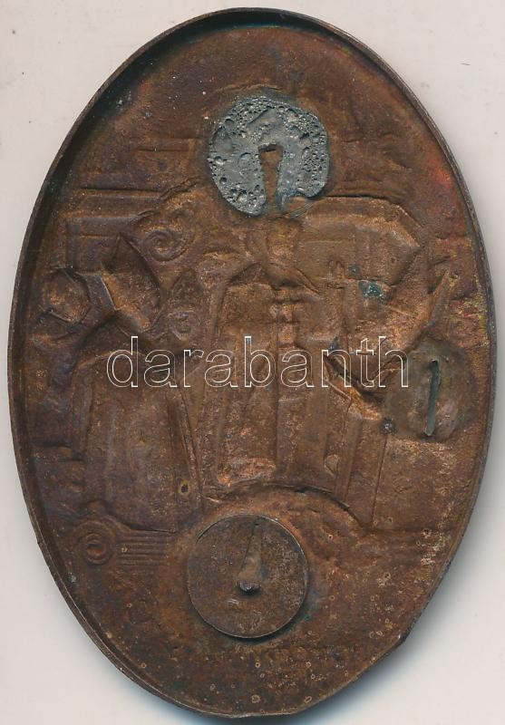 Description: Osztrák-Magyar Monarchia 1916. "IV. Károly megkoronázása 1916. December 30." fém ovális jelvény (61,5x42,5mm) T:2,2- tű letörve