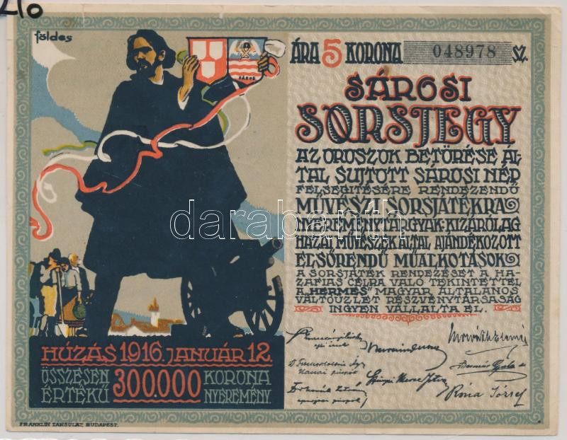 https://www.darabanth.com/en/227-Online-auction/227.0/Numismatics/Shares-and-Tickets~600006/1916-Sarosi-Sorsjegy--Az-oroszok-betorese-altal-sujtott-sarosi-nep-felsegitesere-rendez~II1005359