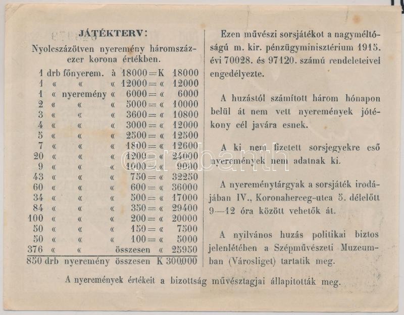1916. "Sárosi Sorsjegy - Az oroszok betörése által sújtott sárosi nép felsegítésére rendezendő Művészi Sorsjátékra" 5K értékben T:III szakadás