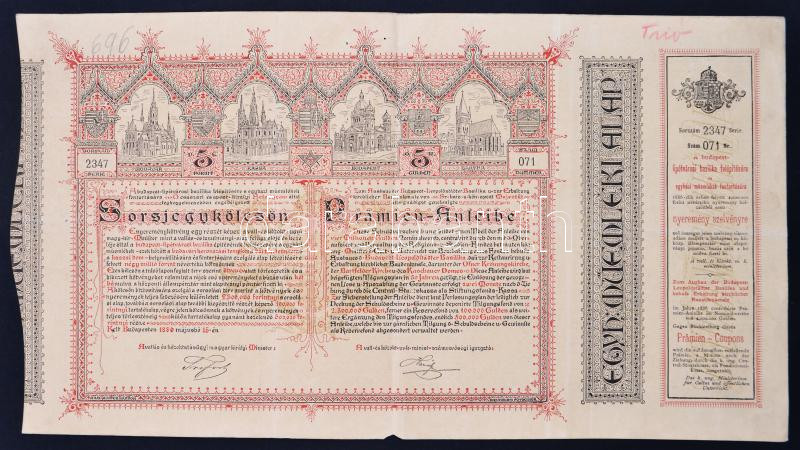 Budapest 1886. "Egyházi Műemlék Alap" Sorsjegykölcsöne 5Ft-ról a budap...