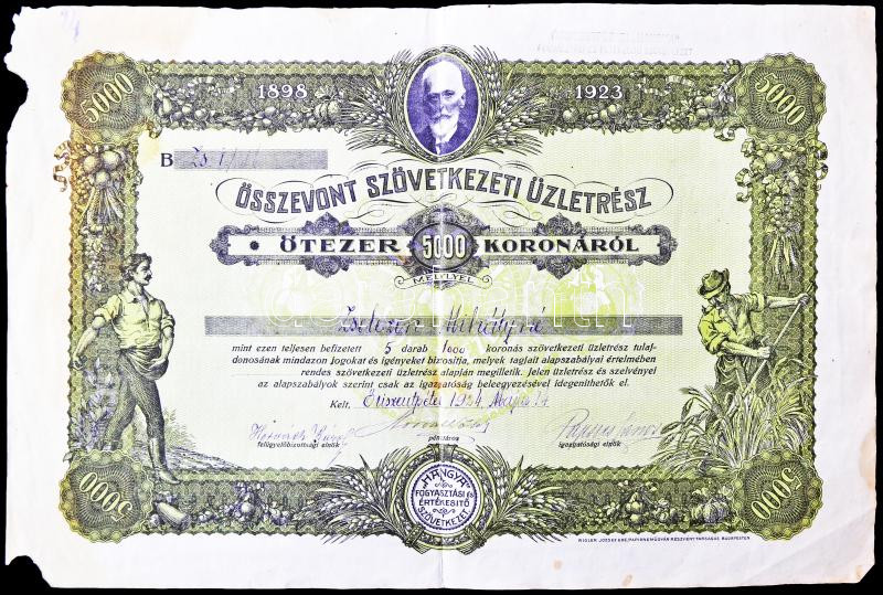https://www.darabanth.com/en/227-Online-auction/227.0/Numismatics/Shares-and-Tickets~600006/Oriszentpeter-1924-Hangya-Fogyasztasi-es-Ertekesito-Szovetkezet-Osszevont-Szovetkezeti-~II1012745
