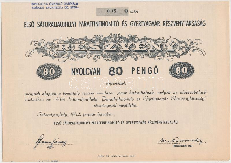 https://www.darabanth.com/en/227-Online-auction/227.0/Numismatics/Shares-and-Tickets~600006/Satoraljaujhely-1942-Elso-Satoraljaujhelyi-Paraffinfinomito-es-Gyertyagyar-Reszvenytar~II1004195
