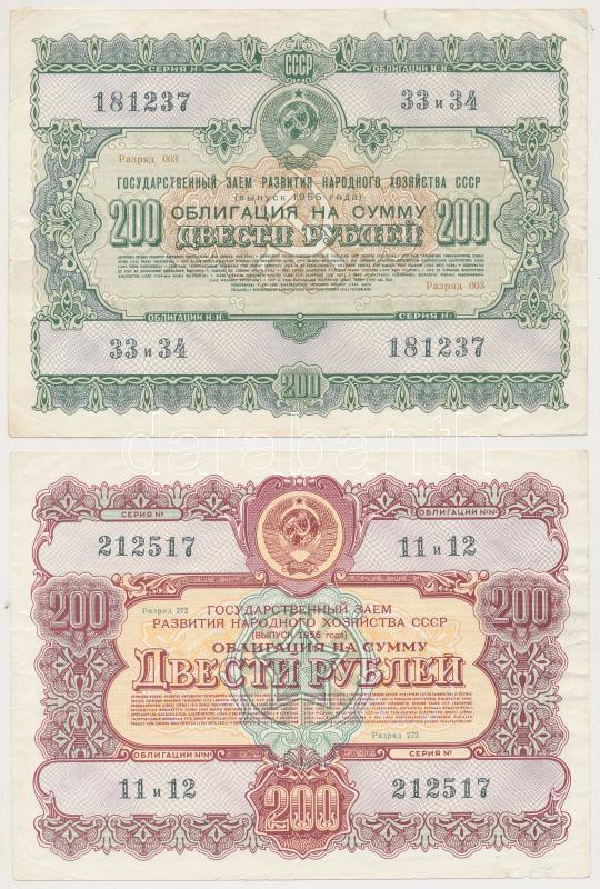 Szovjetunió 1955-1956. 200R állami fejlesztési kötvény (2xklf) T:II-,III