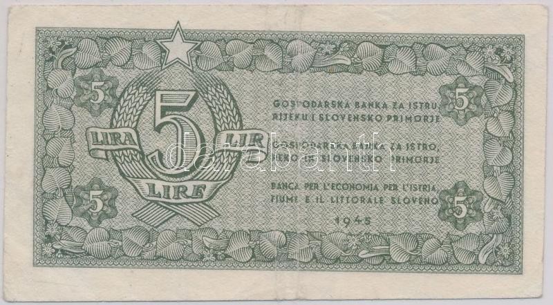 Description: Jugoszlávia / Területi kiadás / Isztria, Fiume és Szlovén Tengerparti Területek Állami Bankja 1945. 5L T:III