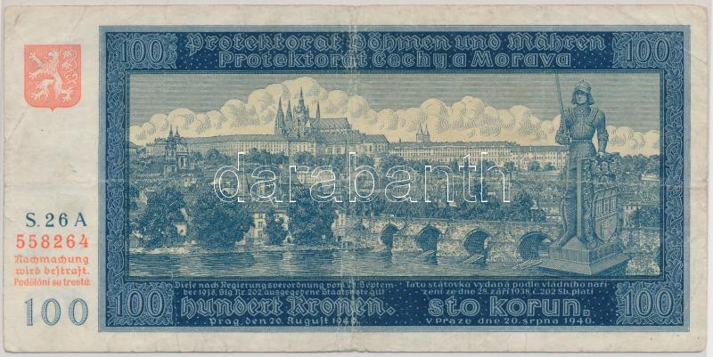 Német 3. Birodalom/Cseh-Morva Protektorátus/német megszállás 1940. 100... https://www.darabanth.com/en/227-Online-auction/227.0/Numismatics/Worldwide-banknotes~600012/Nemet-3-BirodalomCseh-Morva-Protektoratusnemet-megszallas-1940-100K-TIII-3Cbr3EGerman-Third~II1005496