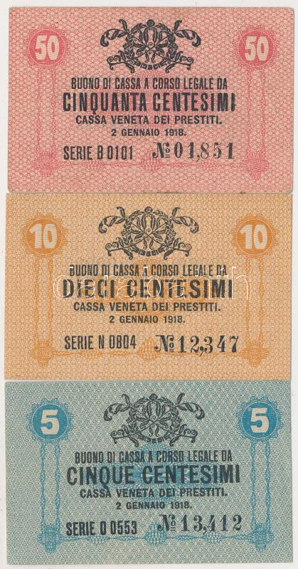 Olaszország/Velence/osztrák-magyar megszállás 1918. 5c + 10c + 50c T:I,II
