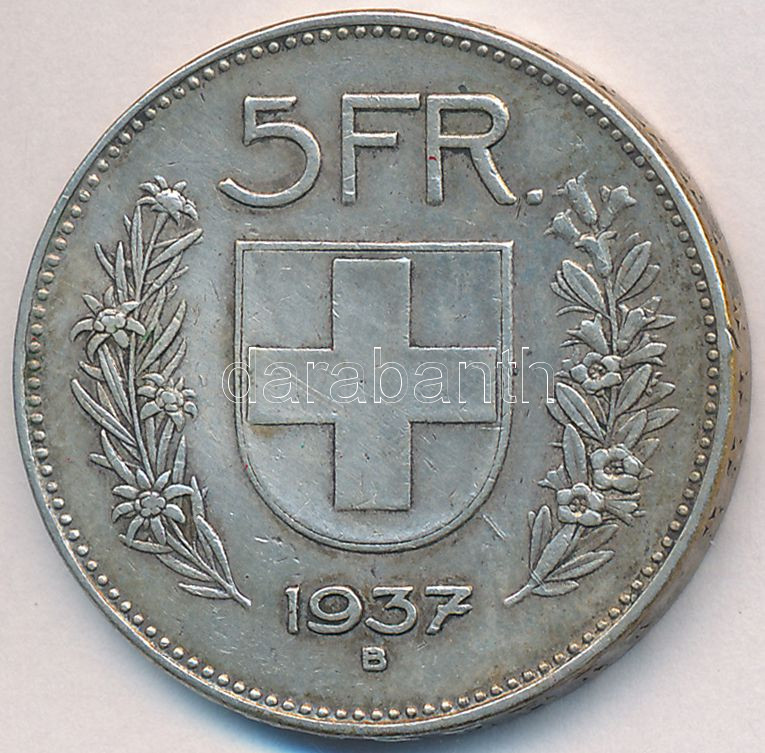 https://www.darabanth.com/en/227-Online-auction/227.0/Numismatics/Worldwide-coins~600013/Svajc-1937B-5Fr-Ag-Helvetia-T2--3Cbr3ESwitzerland-1937B-5-Francs-Ag-Helvetia-CVF~II1012848