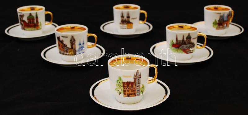 Prága nevezetességeivel díszített kézzel festett porcelán csészék, csészealjjal, hibátlan, jelzett