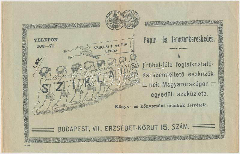 1865 Bp. VII., Sziklai J. és Fia Utóda Papír- és tanszerkereskedésének...