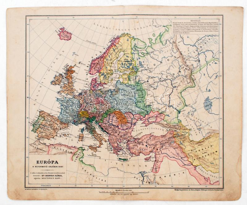 cca 1900 Európa a reformáció idején(1648), tervezte: Dr. Cherven Flóris, rajzolta: Kogutowicz Manó, 37x30 cm