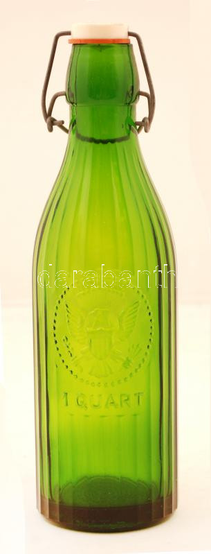 Antik üvegpalack dugóval, hibátlan, "1 Quart" felirattal, m:29 cm
