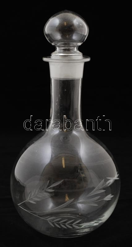 Boros üveg kiöntő metszett díszítéssel, a dugón kis csorbákkal, m: 27 ...