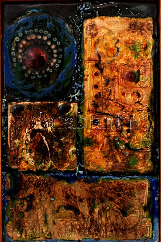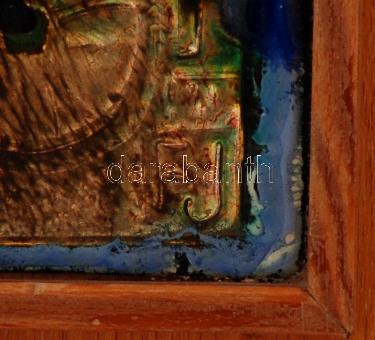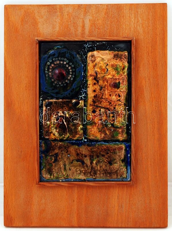 Fajka János(1935-): Napisten. Tűzzománc, réz lemez, jelzett, fa keretb...