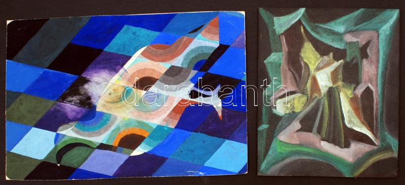 Jelzés nélkül: Kristály, olaj, farost, 24,5×20,5 cm + Olvashatatlan jelzéssel: Csillagköd, olaj, papír, 35,5×24 cm