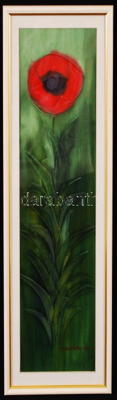 Macskássy Izolda (1945-): Pipacs. Vegyes technika, selyem kartonra kasírozva, üvegezett keretben, 49×18 cm