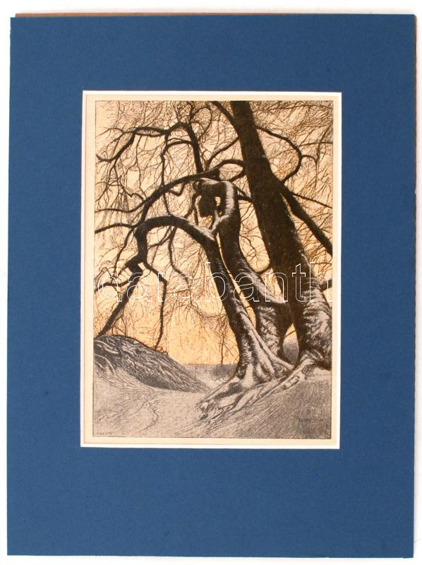 Olgyai Viktor (1870-1929): Téli szürkület. Színezett litográfia, papír...