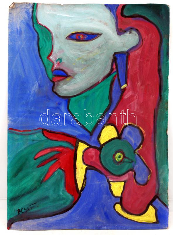 PCSVM jelzéssel: Női fej, vegyes technika, karton, 70,5×50 cm
