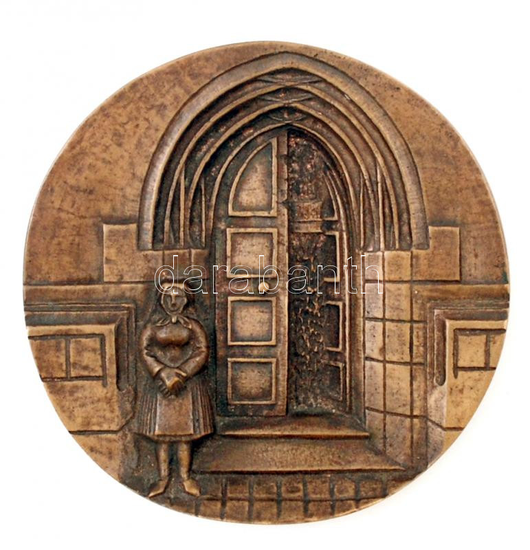 NJ jelzéssel: A Kapunál. Bronz plakett, d:11,5 cm