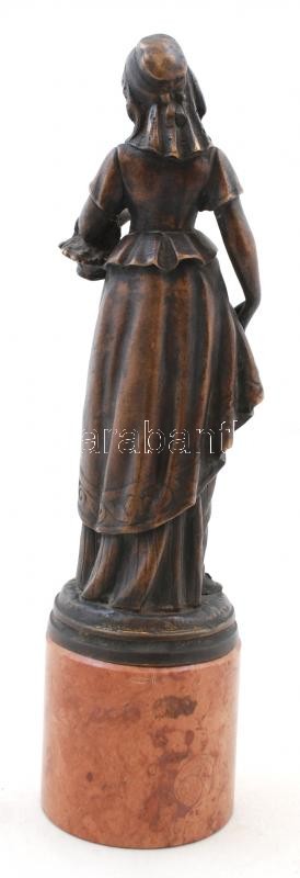 Pásztorlányka, patinázott bronz szobor, márvány talapzaton, jelzés nélkül, apró kopásnyomokkal, m: 34,5 cm