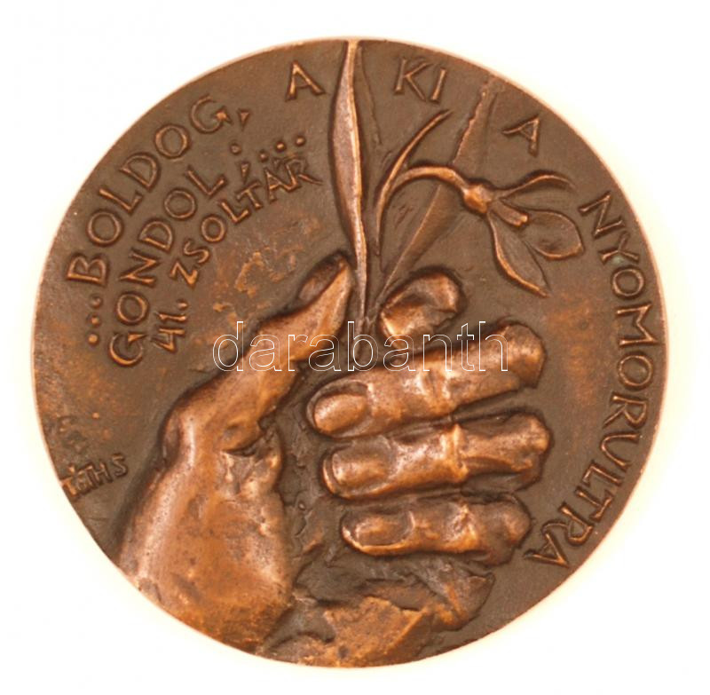 https://www.darabanth.com/en/227-Online-auction/227.0/Other-collectibles/Sculptures-statuettes-plaques~200318/Toth-Sandor-1933-Boldog-aki-a-nyomorultakra-gondol-Bronz-plakett-jelzett-d8-5-cm~II1009237