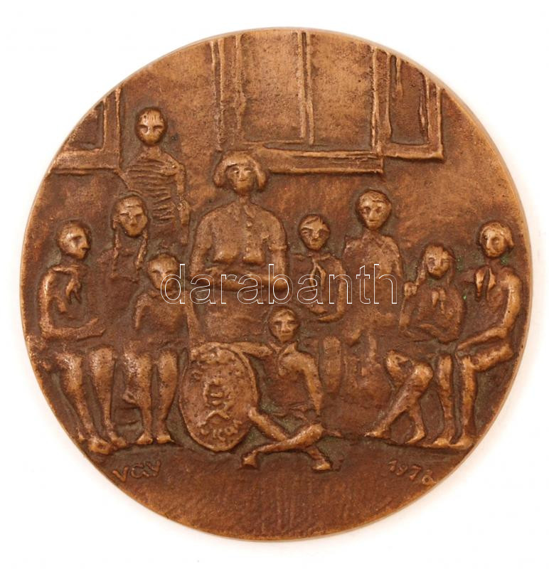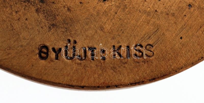 Várhegyi György (1942-): Tablókép. Bronz plakett, jelzett, d:7,5 cm