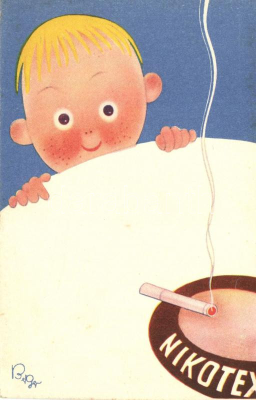 Nikotex advertisement, child with cigarette s: Berger