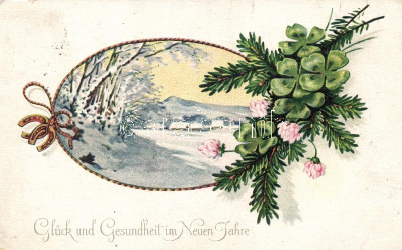New Year, winter landscape, clovers, Wenau-Sikro No. 825. (EK)