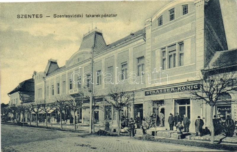 Szentes, Takarékpénztár, Strasser és Kőnig gabonakereskedő cég irodája...