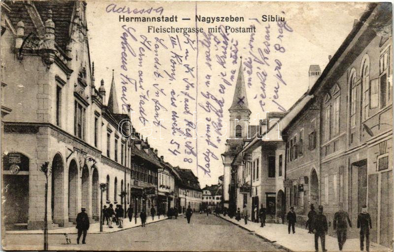 Nagyszeben, Fleischergasse mit Postamt / street, post office