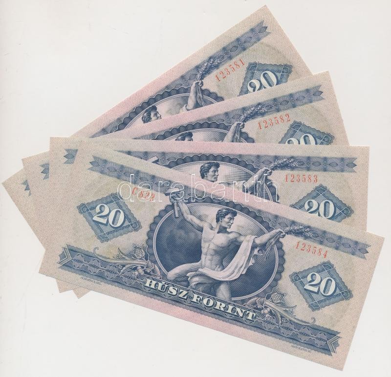 1975. 20Ft (4x) sorszámkövetők, nyomdai papírránccal T:I