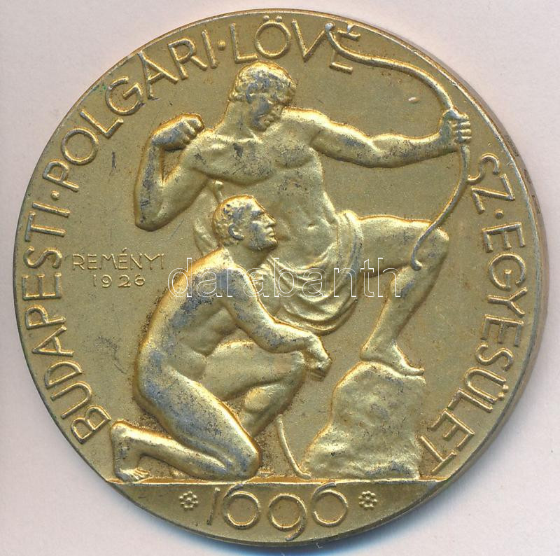 Reményi József (1887-1977) 1926. "Budapesti Polgári Lövész Egyesület" aranyozott fém emlékérem (46mm) T:2-