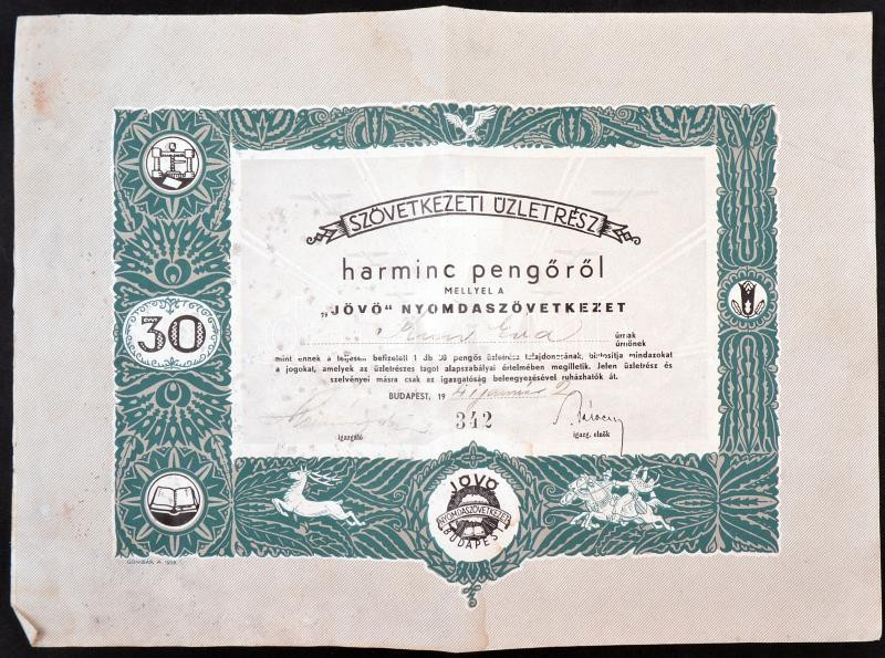 https://www.darabanth.com/en/228-Online-auction/228.0/Numismatics/Shares-and-Tickets~67/1941-Jovo-Nyomdaszovetkezet-szovetkezeti-uzletreszjegy-30P-szelvenyekkel-T-III~II1018477