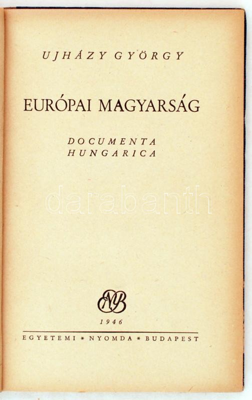 https://www.darabanth.com/en/228-Online-auction/228.0/Other-collectibles/Books-Other-rarities~29/Ujhazy-Gyorgy-Europai-magyarsag-Documenta-Hungarica-3Cbr3EBp-1946-Egyetemi-Nyomda-191plus1-p~II1020040