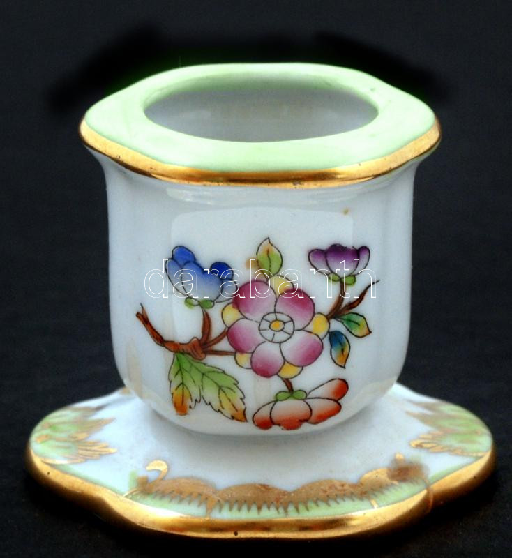 Herendi Viktória mintás gyertyatartó, kézzel festett, jelzett, hibátlan, m:4,5 cm