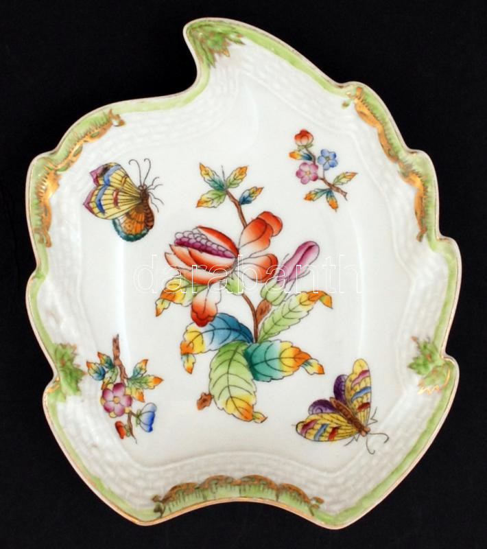 Herendi Viktória mintás leveles tálka, kézzel festett, jelzett, hibátl...