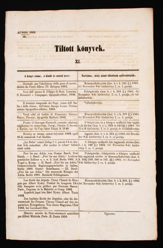 1863 Buda, A cenzúra által kiadott tiltott könyvek listája, a felsorol... https://www.darabanth.com/en/228-Online-auction/228.0/Other-collectibles/Printed-Materials~5/1863-Buda-A-cenzura-altal-kiadott-tiltott-konyvek-listaja-a-felsorolasban-szerepel-Szechenyi~II1014744